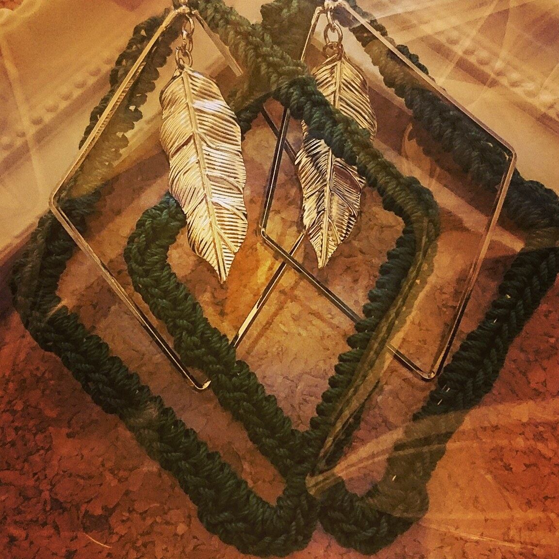 ユラユラピアス 糸で編み込んだおおぶりピアス