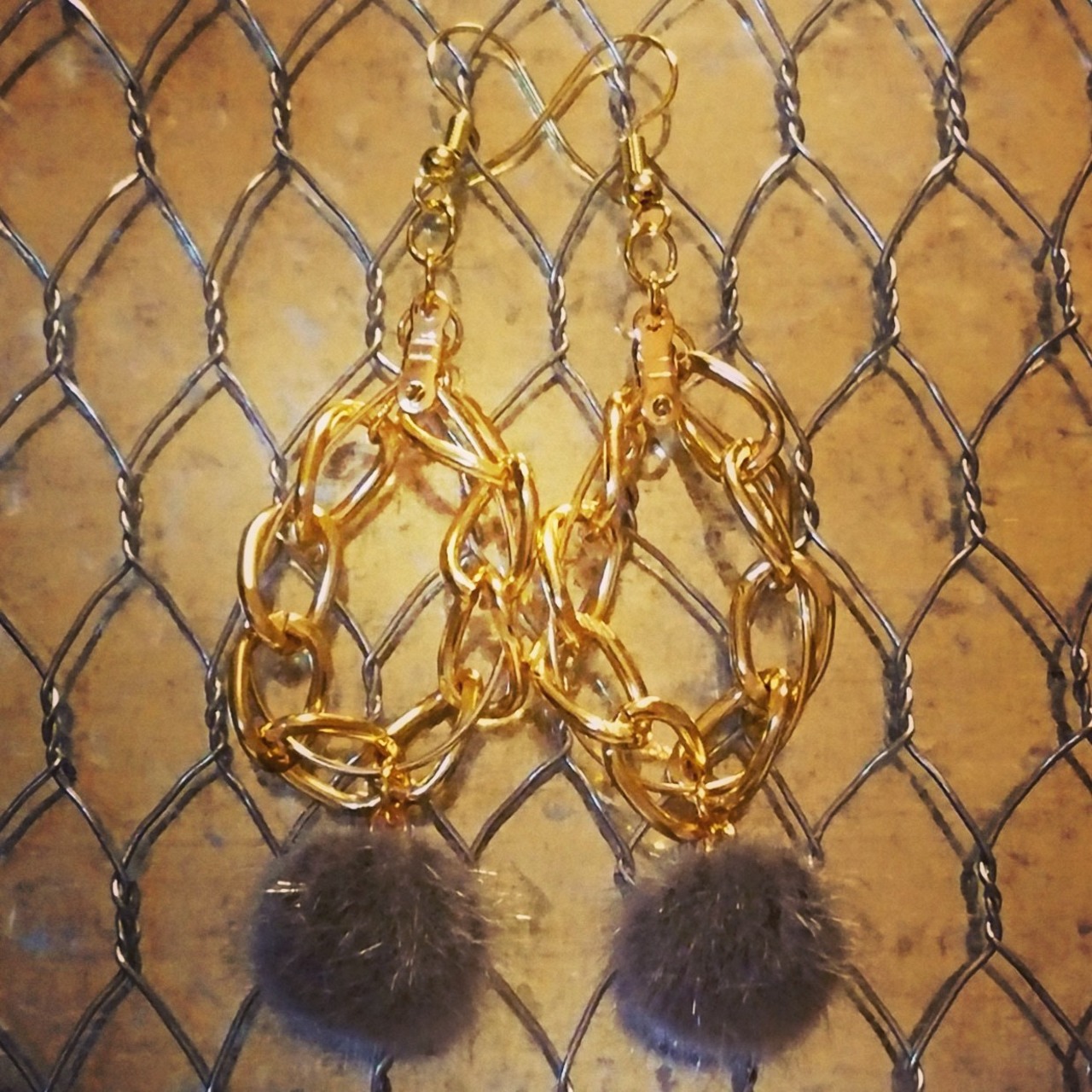 ふわもこ ピアス 鎖ピアス ゴールド ユラユラ
